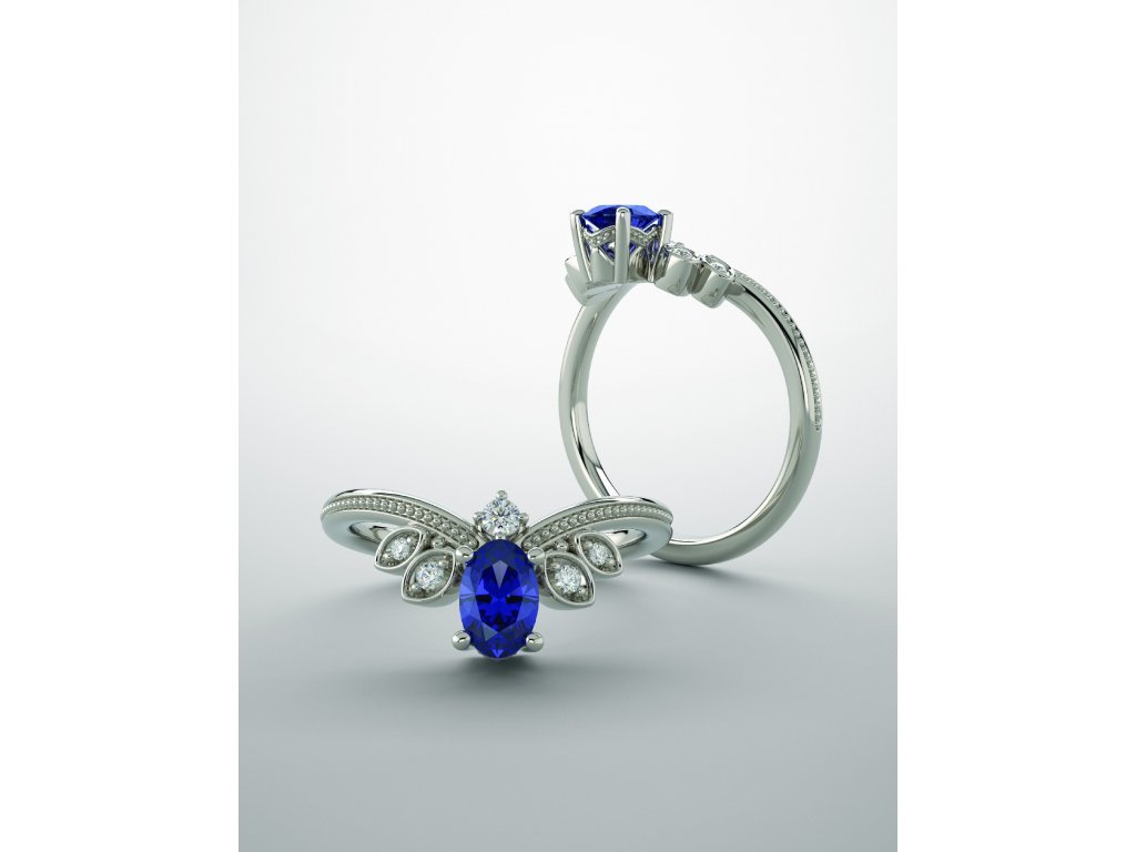 The original engagement ring CLAUDIA will light up the eyes of every lady who loves unique jewellery. We are happy to set a different shape or other gemstone instead of the central tanzanite, from a natural diamond to a moissanite. See the ring from all sides in the video below.