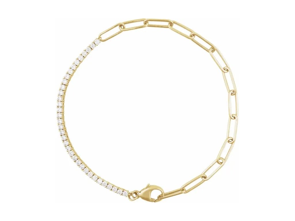 ✨ Diamantový tenisový náramek v PAPER CLIP designu – stylová elegance a luxus v jednom. Tento šperk spojuje moderní paper clip design s krásou přírodních diamantů, které mu dodávají výjimečný třpyt. Náramek je precizně vyroben ze 14kt zlata, ideální pro každodenní nošení nebo jako dokonalý dárek pro speciální příležitosti.
